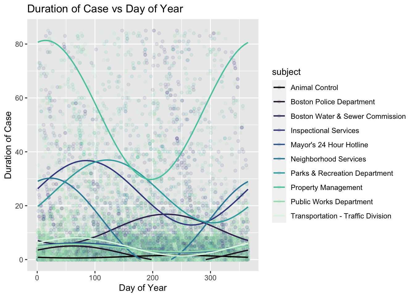 Here, we have modified our model from last week to account for any perodicity in the relationship between duration and open_dt.